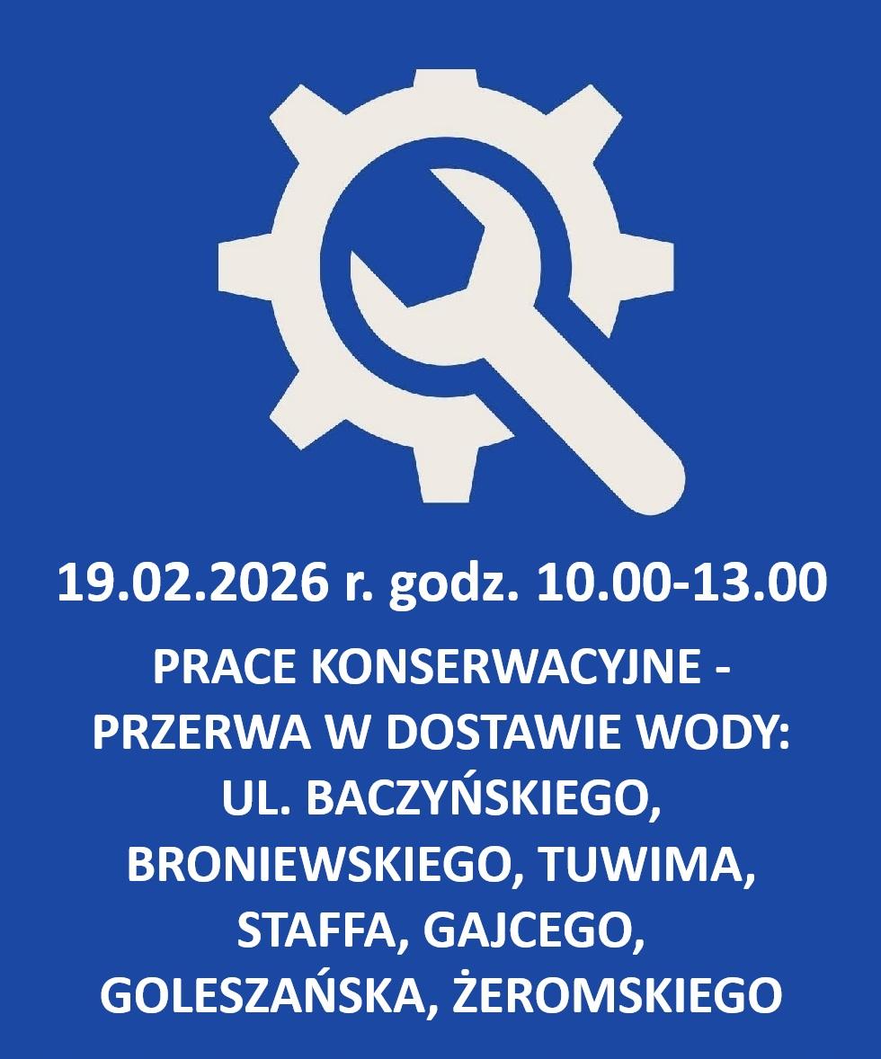 W dniu 19.02.2026 r. w godz. 10.00-13.00 w związku z planowanymi pracami konserwacyjnymi na sieci wodociągowej nastąpi krótkotrwałe wstrzymanie dostawy wody dla budynków przy ulicy:
